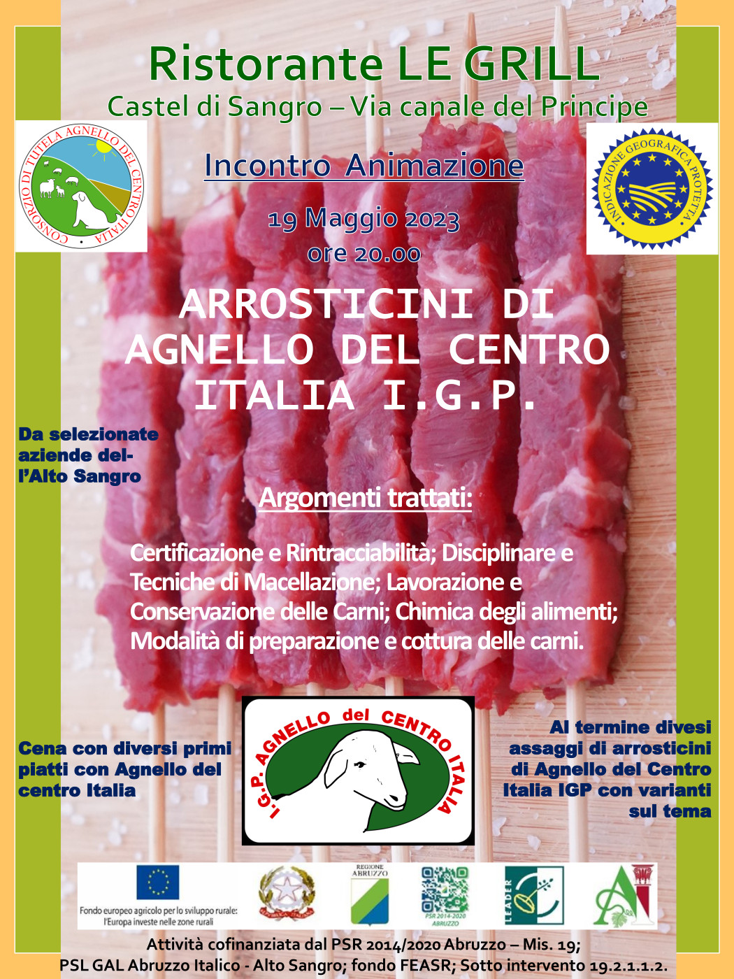 Prende il via la collaborazione tra Il Consorzio di Tutela Agnello del Centro Italia ed il GAL Italico – Alto Sangro – Società Consortile – per promuovere le Carni di Agnello del Centro Italia I.G.P. e l’Arrosticino 100 % Abruzzese.